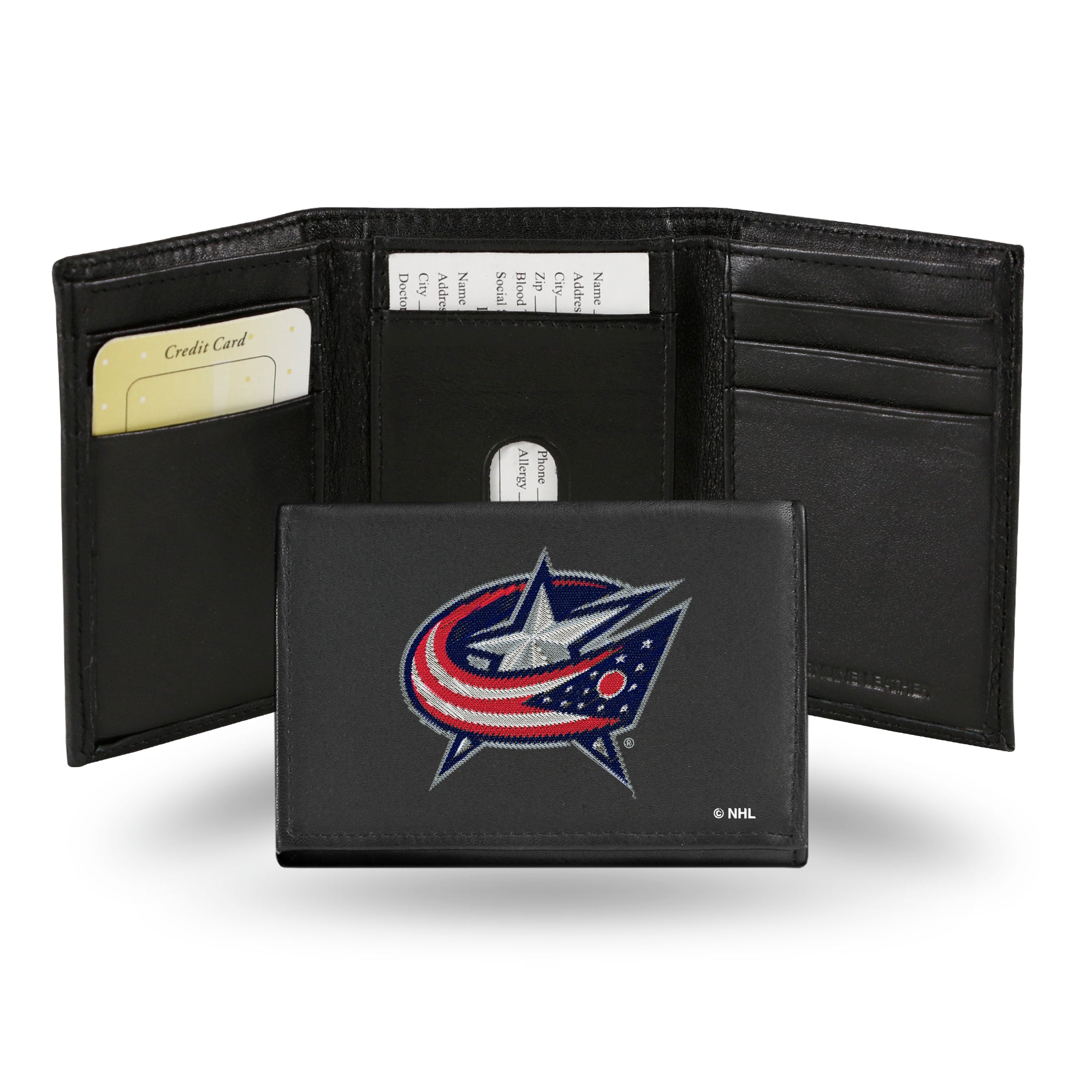 COLUMBUS BLUE JACKETS BLACK EMBROIDERED GENUINE LEATHER TRI-FOLD WALLET