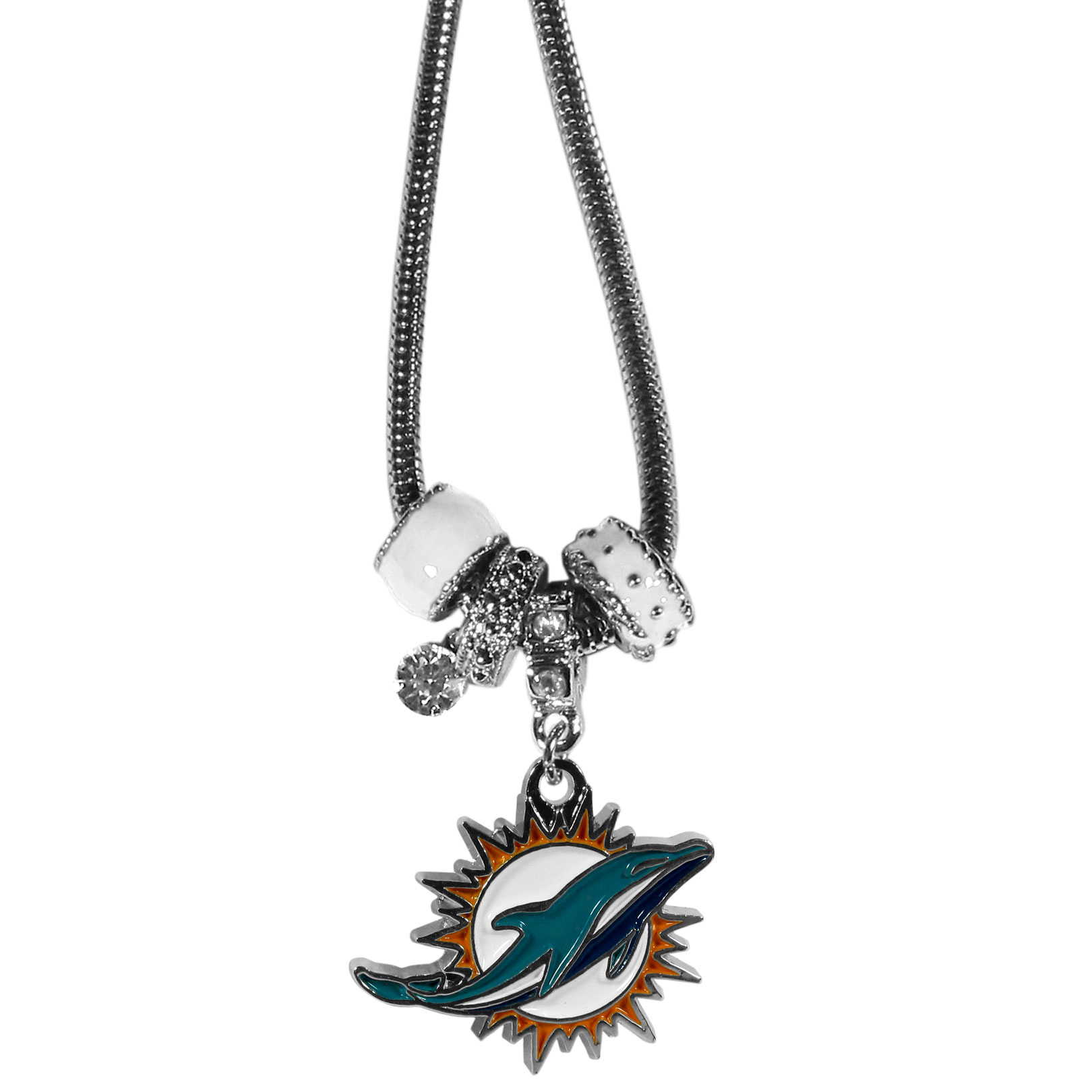 Features 18″ snake chain with four Euro beads. Enameled team colors and rhinestone accents.